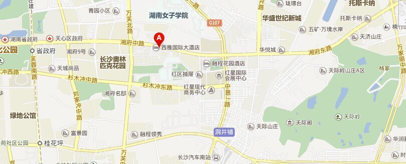 長沙火車站:乘坐7路或107路公交車在高升村南站下,往湘府中路方向步行約1.2公里;全程打車費用約27元。